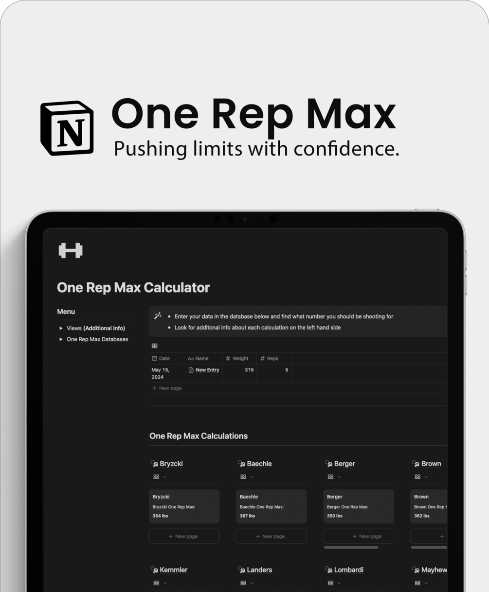 - Accurate 1RM Calculations: Powered by multiple industry-standard formulas.